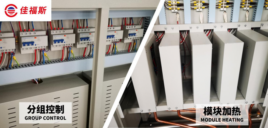 2、佳福斯电采暖炉加热体采用的是自主研发的 RLU 动态三维加热技术,五核速热,加热更快,活性流水,不结水垢,热效率永不衰减。
